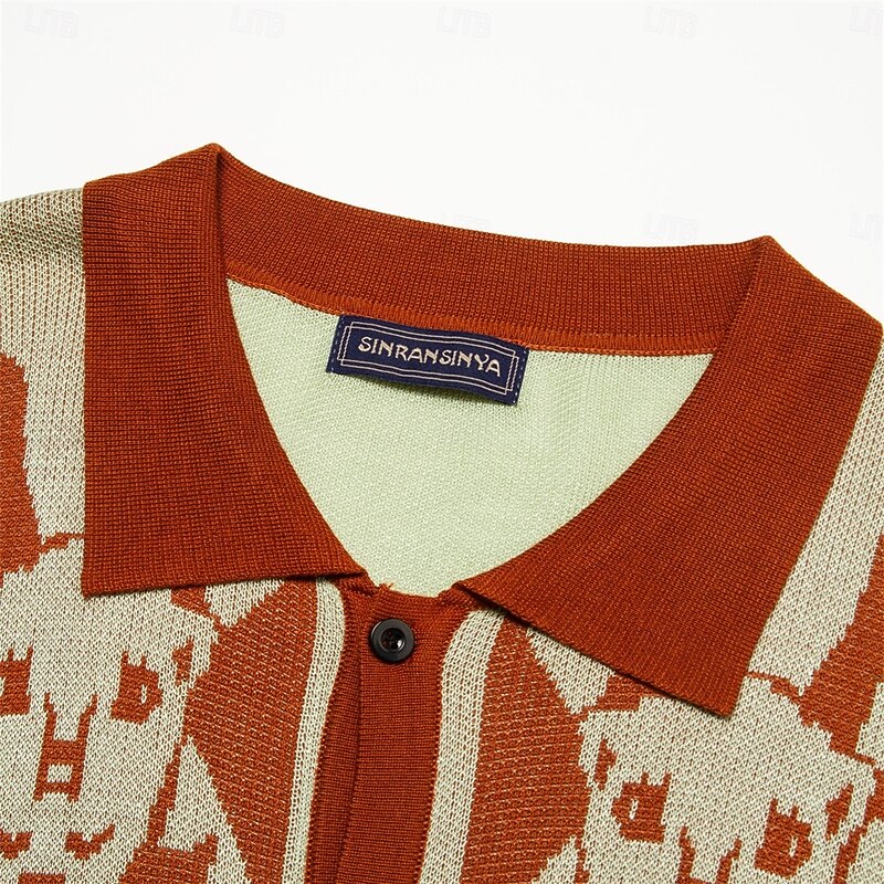 Men's Knit Polo Sweater Golf Shirt Casual Turndown Short Sleeve Vintage Animal Striped Knitted Graphic Summer Spring Winter Regular Fit Coffee Knit Polo Sweater 8