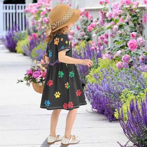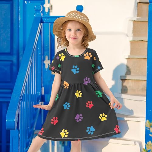 Toddler Girls' Dresses Colorful Dog Paw Cartoon Cute Spring Dress 2t Summer Short Children