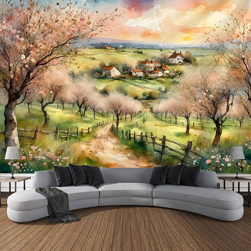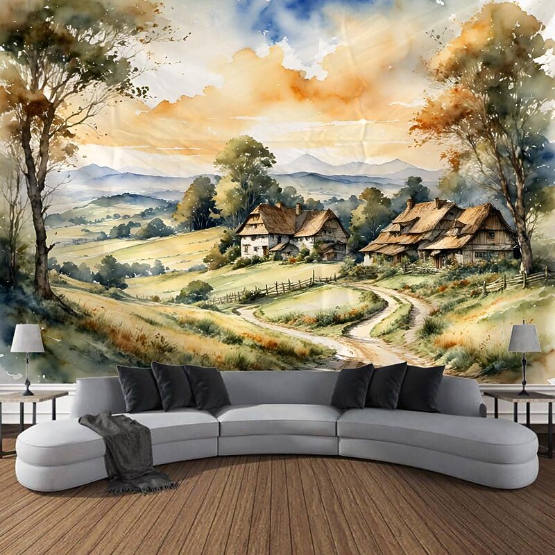 HOT ! Nature Countryside View Hanging Tapestry Wall Art Large Tapestry Mural Decor Photograph Backdrop Blanket Curtain Home Bedroom Living Room Decoration Farmhouse