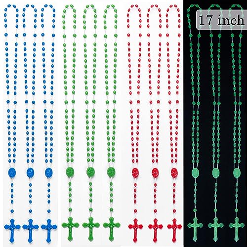 • Size and Colors: Rosary beads necklace: 17 inches; rosary bead: 0.6mm. plastic rosary necklace 4 different colors, 25 of each color, blue, red, green and luminous (glow in the dark)