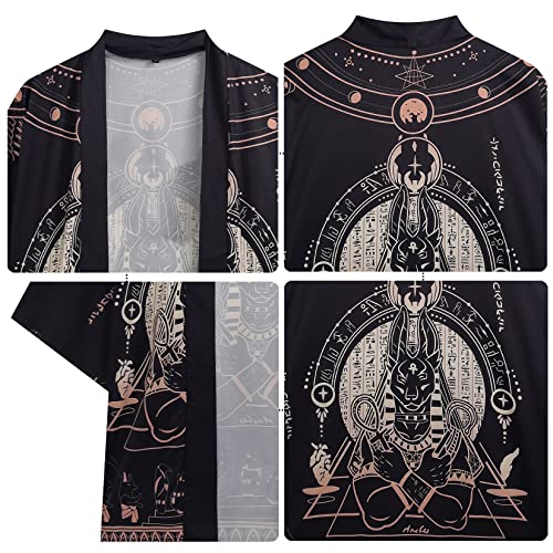 PRIJOUHE Mens Japanese Kimono Coat Suits Loose Open Front Seven Sleeve Kimono Cardigan Jacket with Shorts 4