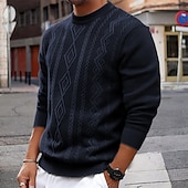 More information about Men's Pullover Sweater Jumper Knit Sweater Ribbed Knit Regular Tops Knitted Fleece Plain Crew Neck Fashion Basic Vacation Daily Wear Clothing Apparel Fall Winter Wine Black S M L
