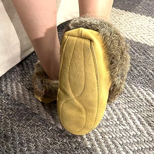 • Rabbit Fur Moccasins Slippers with Beautiful Beads Design : Luxurious fuzzy rabbit fur collar add extra warmth & style. Bright and lovely hand beaded design on the vamp gives these moccasins slippers extra fashion.