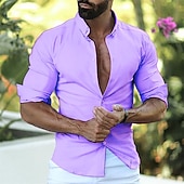 More information about Men's Summer Shirt Casual Shirt Button Up Shirt Black Pink Purple Orange Green Long Sleeve Plain Lapel Outdoor Vacation Clothing Apparel Polyester Fashion Casual Shirts Comfortable