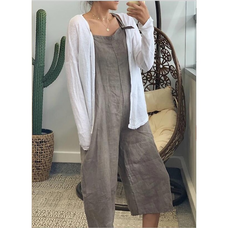 More information about Women's Normal Cotton Linen Pants Dungarees Slacks Overalls Classic Style Calf-Length Mid Waist Plain Baggy Inelastic Going out Black Yellow Army Green Red Summer Spring & Fall Loose Fit