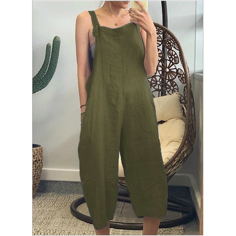 Women's Normal Cotton Linen Pants Dungarees Slacks Overalls Classic Style Calf-Length Mid Waist Plain Baggy Inelastic Going out Black Yellow Army Green Red Summer Spring &  Fall Loose Fit 1