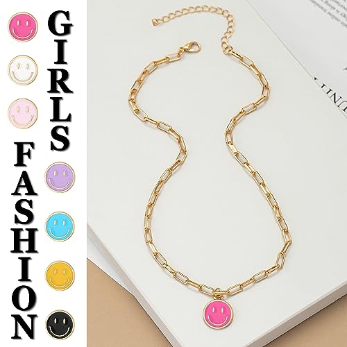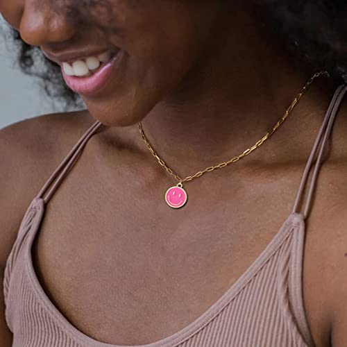 • Smile Pendant Necklace: Cute round smile face chain necklace, stylish and simple gold paperclip chain with colorful smile face charm pendant, add infinity personal charm for you. A very fashion and trendy necklace.