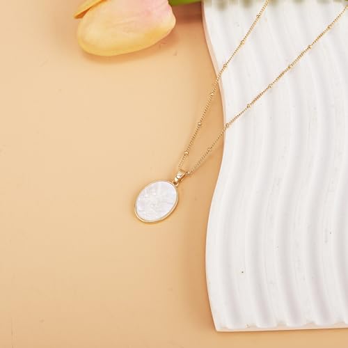 HOT ! Archangel Michael Necklace Gold - St Michael Pendant Mother of Pearl Shellfish,Saint Michael Religious Protection Victory Amulet,Catholic Christian Jewelry Gift for Women Men