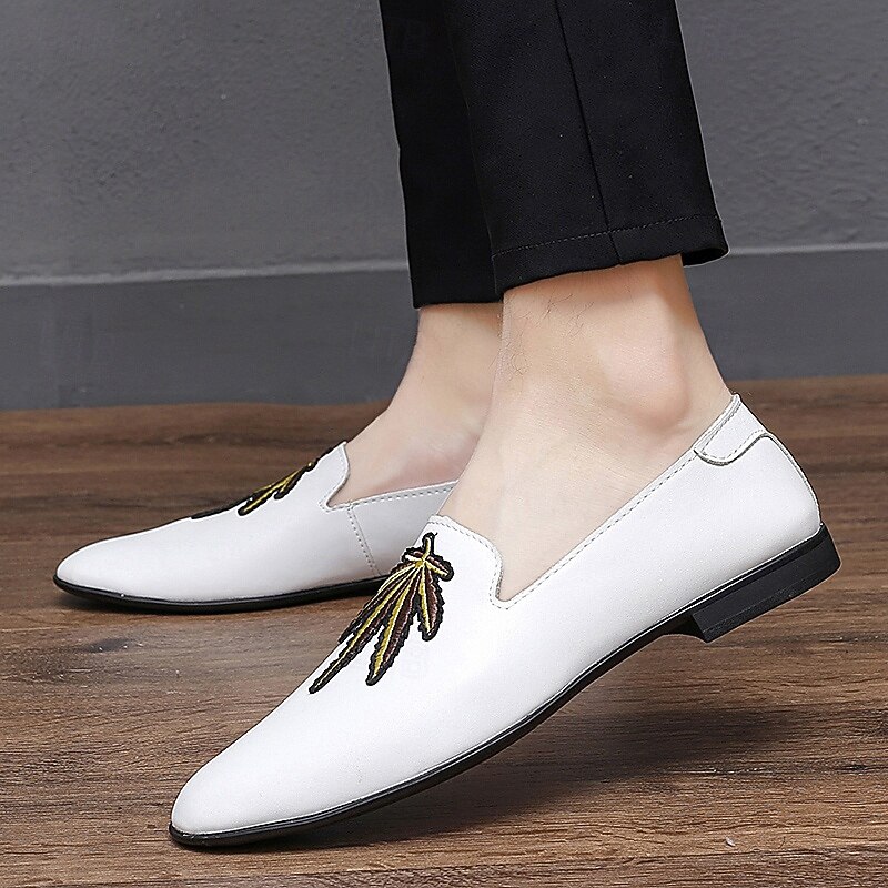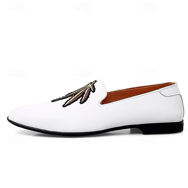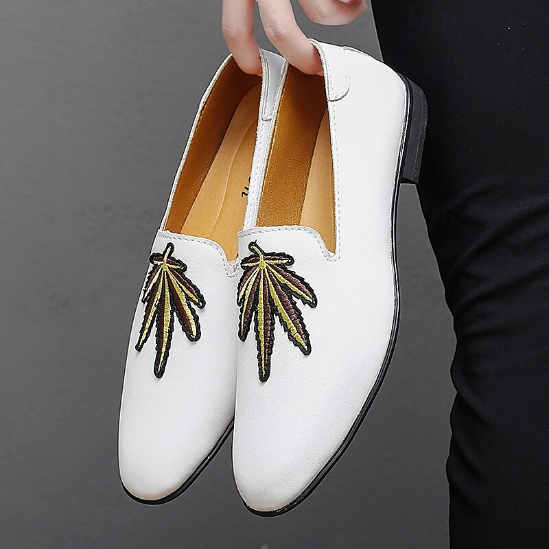 HOT ! Men's Prom Shoes - White Faux Leather Loafers with Feather Tassel Detail for Formal Events