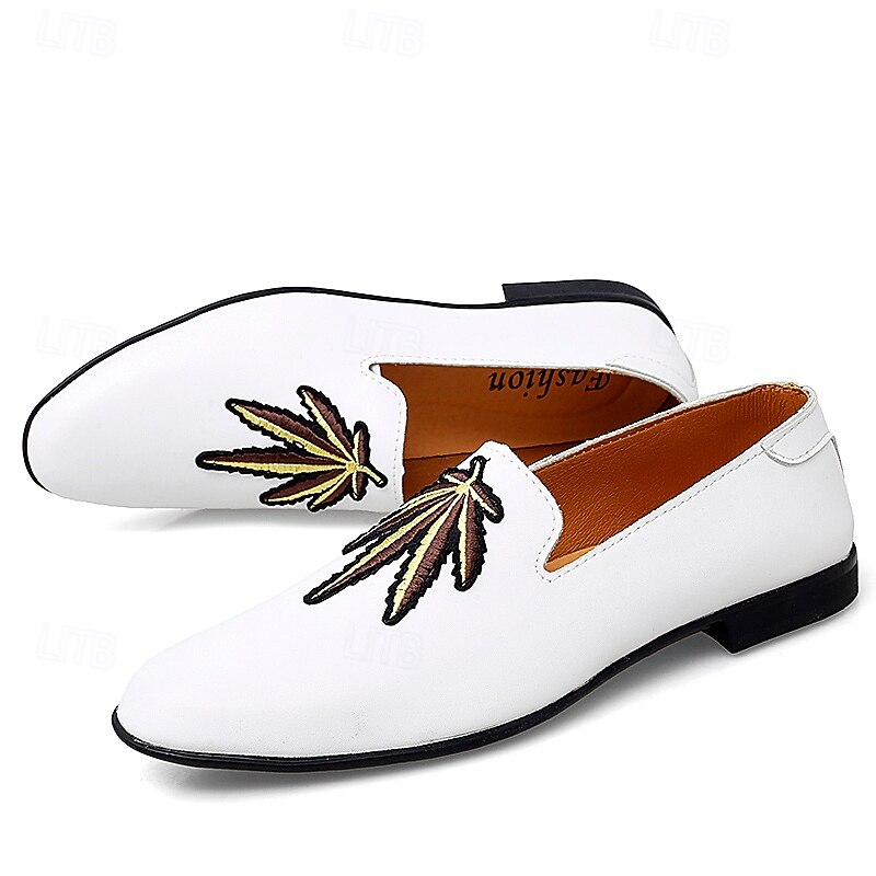 Men's Prom Shoes - White Faux Leather Loafers with Feather Tassel Detail for Formal Events 24