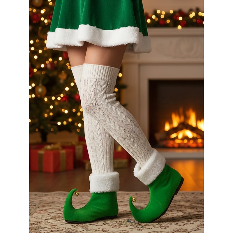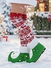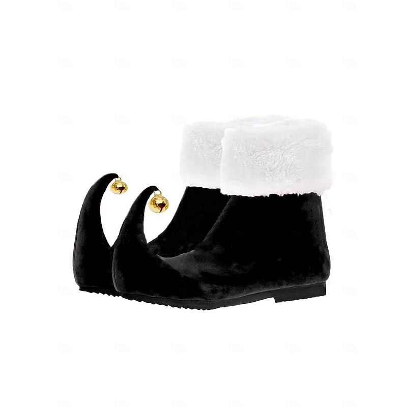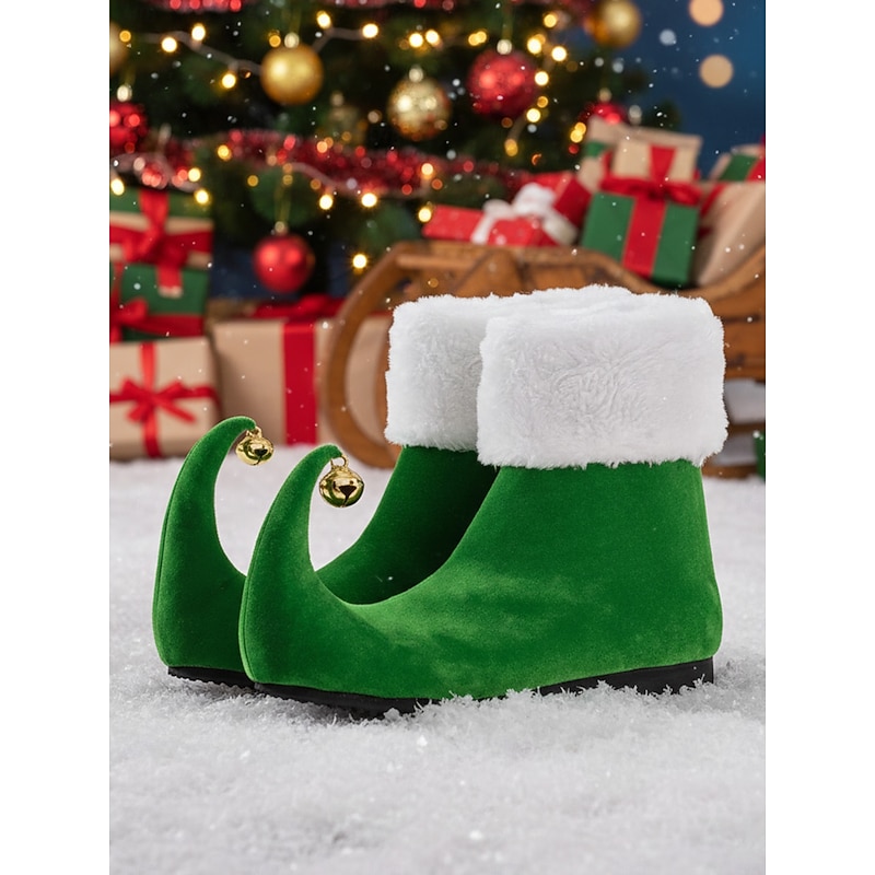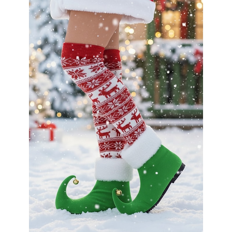 HOT ! Women's Red Christmas Elf Boots with Curled Toe and Jingle Bells – Festive Holiday Costume Shoes for Parties and Cosplay