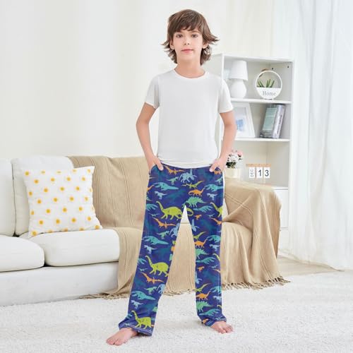 HOT ! ZZXXB Retro Dinosaur Camouflage Print Boys Long Pants Soft Trousers Elastic Waist Kids Lounge Bottoms with Pockets S-XL
