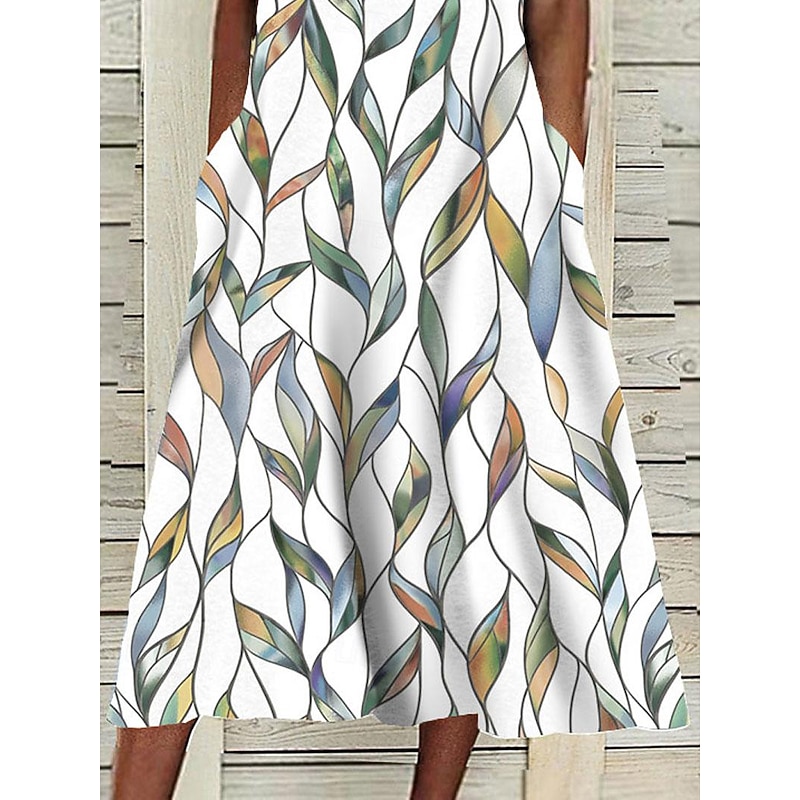 Women's Midi Dress Casual Dress Shift Dress Leaf Print Print V Neck Classic Casual Daily Vacation Half Sleeve Summer Spring 7