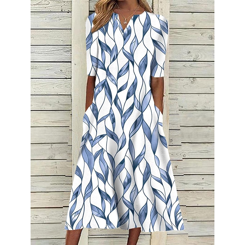 More information about Women's Midi Dress Casual Dress Shift Dress Leaf Print Print V Neck Classic Casual Daily Vacation Half Sleeve Summer Spring