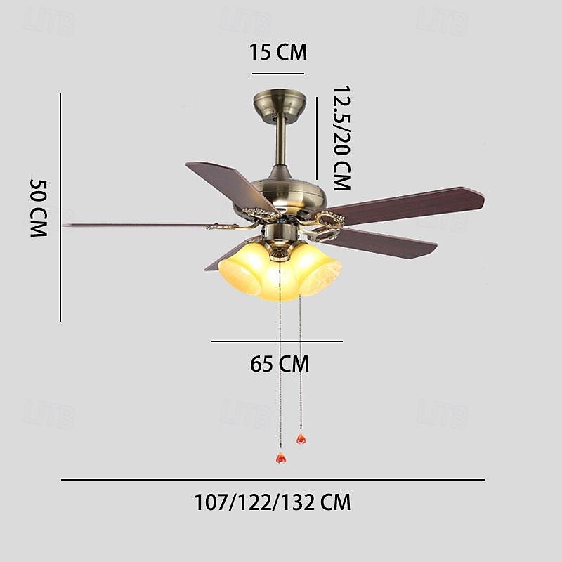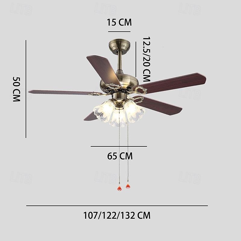 Ceiling Fan with Lights and Remote 108/120/130cm Industrial Fandelier Indoor Vintage Chandelier Fan Light for Bedroom, Living Room, Dinning Room, Kids Room Warm Light 11