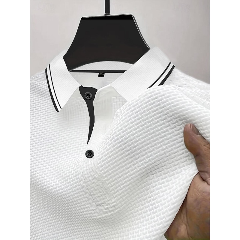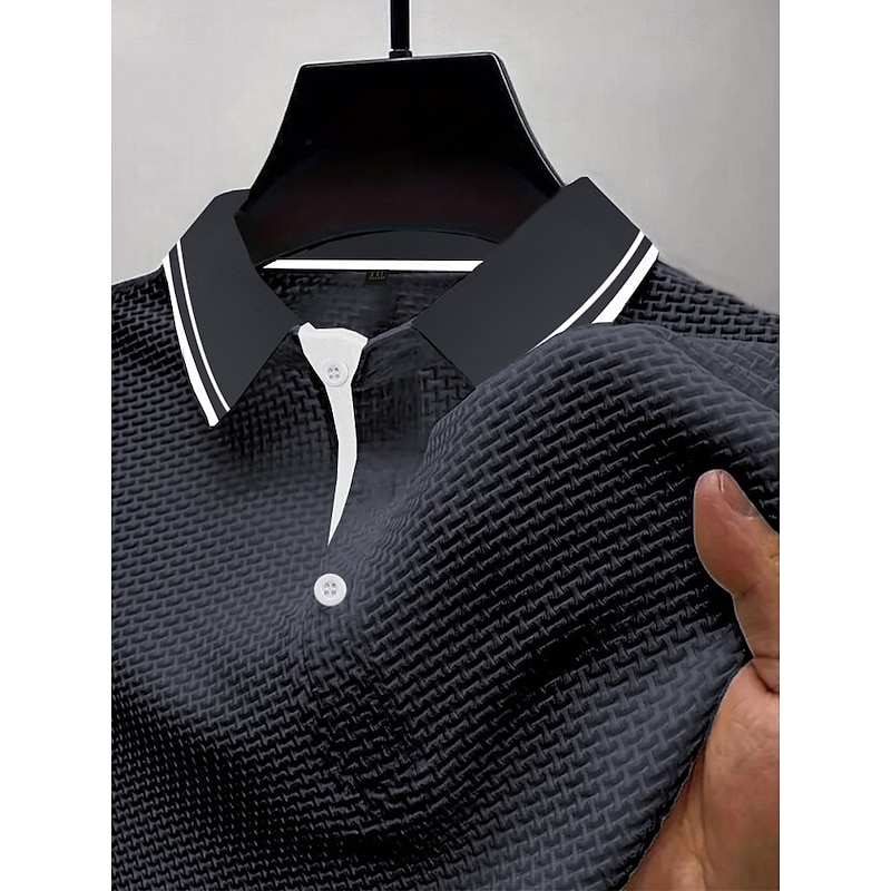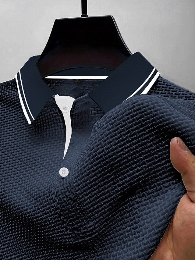 Men's Waffle Polo Shirts Golf Shirt Work Casual Lapel Short Sleeve Basic contemporary Textured Buttons Jacquard Summer Regular Fit Black White Black Dark Blue Navy Blue Waffle Polo Shirts