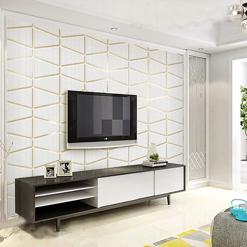 HOT ! Geometric Wallpaper 3D Wall Murals Non-woven Fabric Imitation Deerskin Velvet Wallpaper Adhesive Required for Bedroom Living Room TV Background Home Decoration 53x950/20.87''x374''