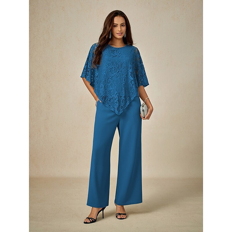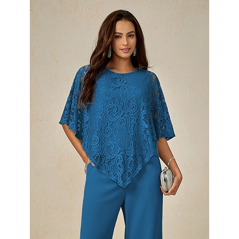 Women's Blouse Dressy Tops Elegant Half Sleeve Crew Neck Wedding Guest Daily Lace Patchwork Layered Blue Summer Spring Fall