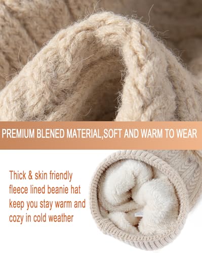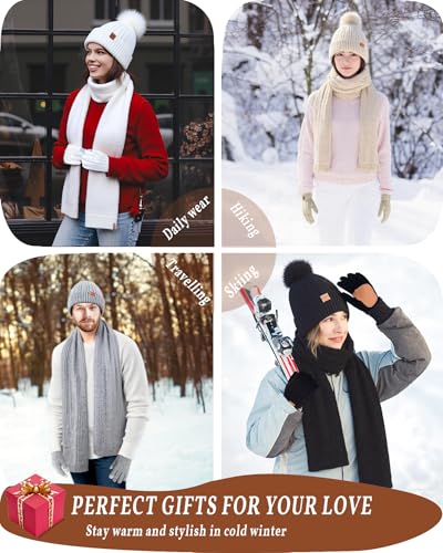 Winter Beanie Hat Scarf Gloves Set for Women Men Fleece Lined Hat Pom Pom Touchscreen Gloves Cold Weather 4