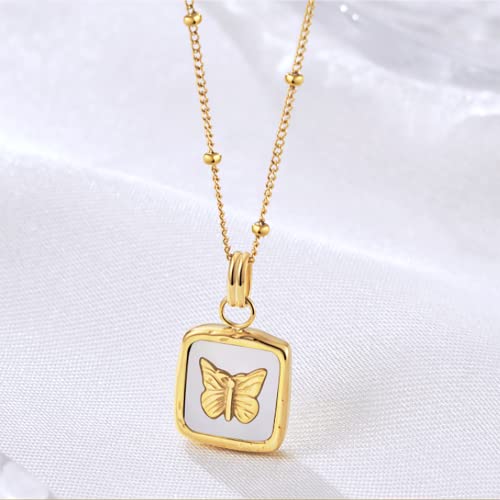 Dainty Gold Necklace for Women 18K Gold Plated Adjustable Mother of Pearl Butterfly/Moon/Smiley Face/Handmade Necklaces for Women Girls, Jewelry Gifts for Her 1