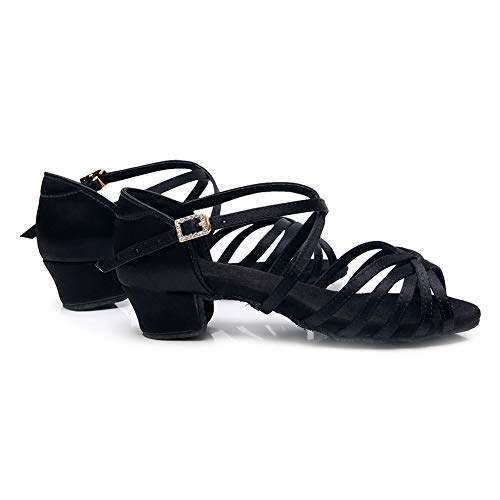 YKXLM Silk Fabric Black Latin Dance Shoes for Girls Latin Ballroom Dance Shoes Girls with Diamond Buckle,Model US-TL-LP1202-ZSZK, 6 M Little Kid 5