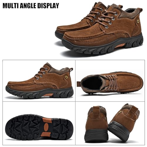 Men's Leather Orthopedic Casual Ankle Boots Classic Lace Up Comfortable Arch Support Anti-slip Platform Hiking Booties Fall Winter Outdoor Trekking Climbing Walking Boots 7