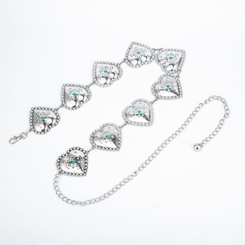 More information about ILuvatar Cowgirl Boho Turquoise Concho Belts for Women, Silver Chain Belts for Women Western Waist Chain Belt for Dresses Jeans