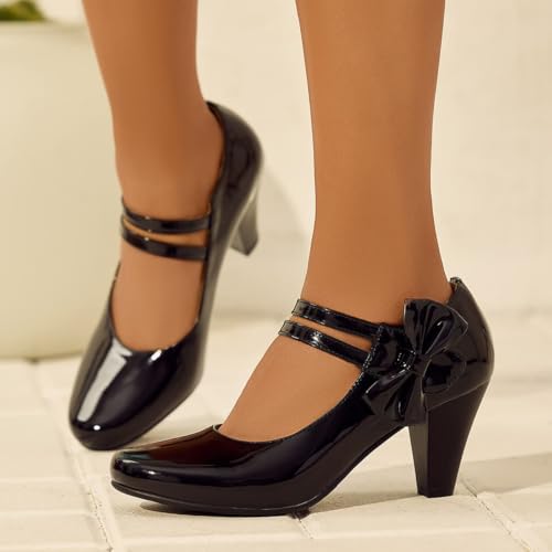 More information about Chunky Mary Jane Shoes for Women High Platform Round Toe Heels Patent Leather Fashion Single Strap Dress Wedding Party Pumps Shoes