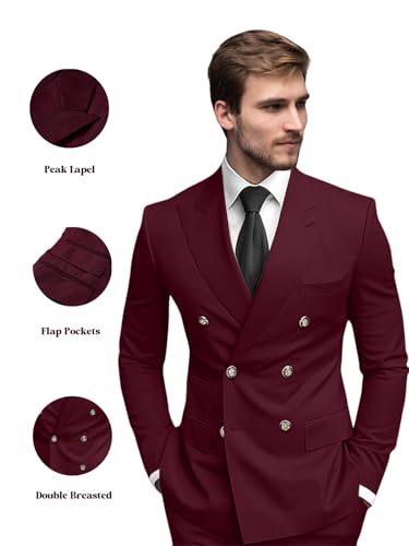 More information about Men's 2 Piece Suits Slim Fit Suit Double Breasted Suit Set Formal Tuxedo for Wedding Prom Business Dinner Party