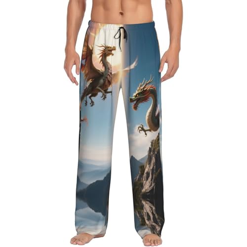 HOT ! Dragon Print Men'S Soft Pajama Pants Elastic Waistband Sleep Pajama Pant With Pockets