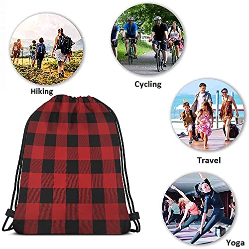 Black And Red Buffalo Drawstring Bags Backpack Bag Plaid Classic Pattern Tartan Art Stripes Sport Gym Sack Drawstring Bag String Bag Yoga Bag for Men Women 5