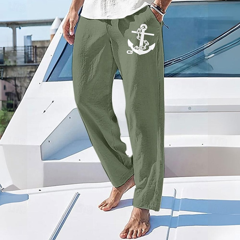 $25.99 - Men's Summer Pants Elastic Waist Graphic Anchor Comfort Full Length Outdoor Streetwear Vacation Hawaiian White Blue Micro-elastic 2025. Shop for cheap Holiday online? Buy at lightinthebox.com on sale today!