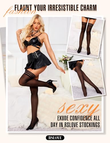 HOT ! RSLOVE Thigh High Stockings for Women - Stripe Top with Anti-Slip Silicone Stay Up Sheer Pantyhose for Women