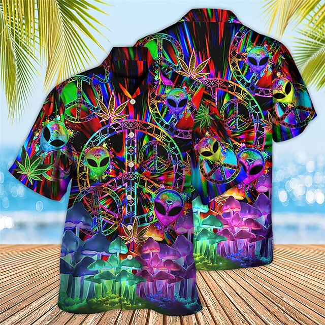 More information about Men's Colorful Mushroom Alien Shirt Summer Hawaiian Shirt Aloha Shirt Short Sleeve Shirt Turndown Tropical Fashion Hawaiian Casual Hawaiian Holiday Red Blue Purple S M L