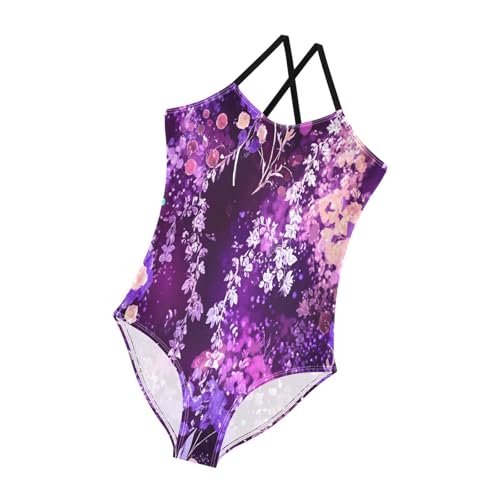 HOT ! Bloom Floral Purple Girl Bathing Suit with Adjustable Shoulder Strap, Beach Bathing Suit, 3-10