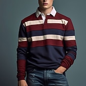 More information about Men's Striped Rugby Polo Shirts Long Sleeve Polo Shirts Zip Casual Outdoor Casual Daily Streetwear 3D Print Fall & Winter Yellow Wine Red