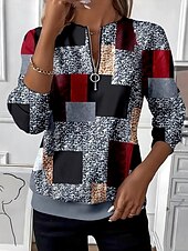HOT ! Women's Pullover Sweatshirt Zip Up Sweatshirts Graphic Geometric Color Block Fashion Casual Long Sleeve Crew Neck Regular Tops Street Dailywear Patchwork Zipper Print Dark Gray Fall Winter