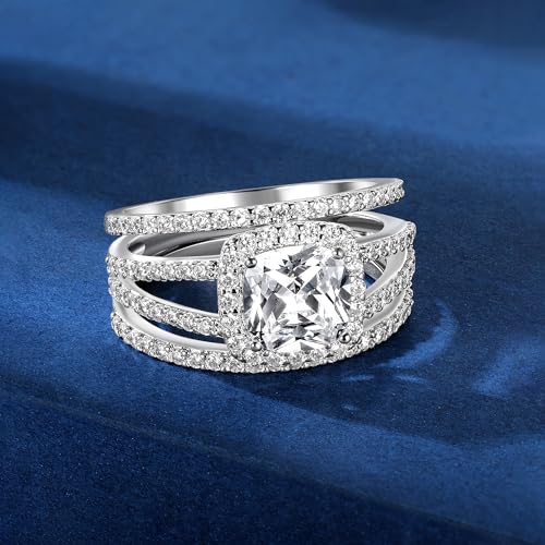 MDFUN 18K White Gold Plated Cubic Zirconia Square Halo Wedding Engagement Promise Eternity Ring for Women 6