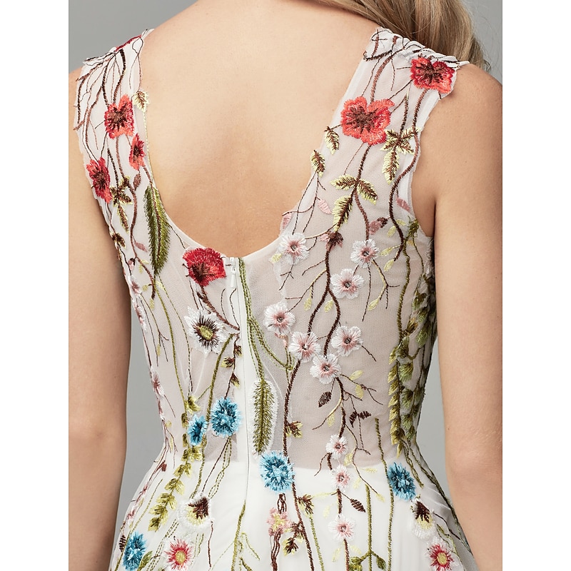 Beach Wedding A-Line Special Occasion Dresses Floral Dress Valentine's Day Wedding Guest Floor Length Sleeveless V Neck Lace with Embroidery Appliques dress to impress 5