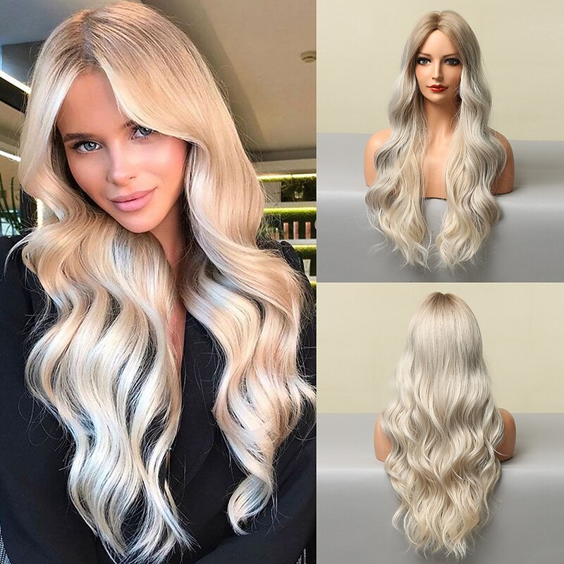 More information about Synthetic Wig Wavy Middle Part Wig Long A24 Synthetic Hair Women's Soft Party Easy to Carry Blonde Pink Black barbiecore Wigs