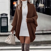More information about Women's Cardigan Elegant Vintage Fashion Solid Color Stand Collar Knitted Batwing Sleeve Long Sleeve Long Tops Knit School Outdoor Home dark brown Black Spring Fall