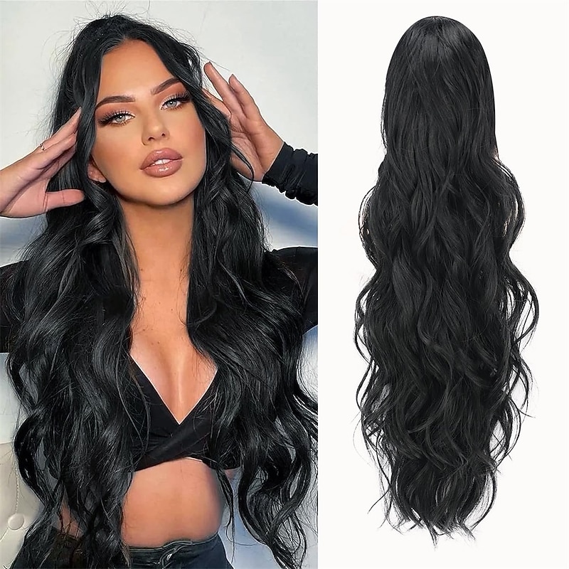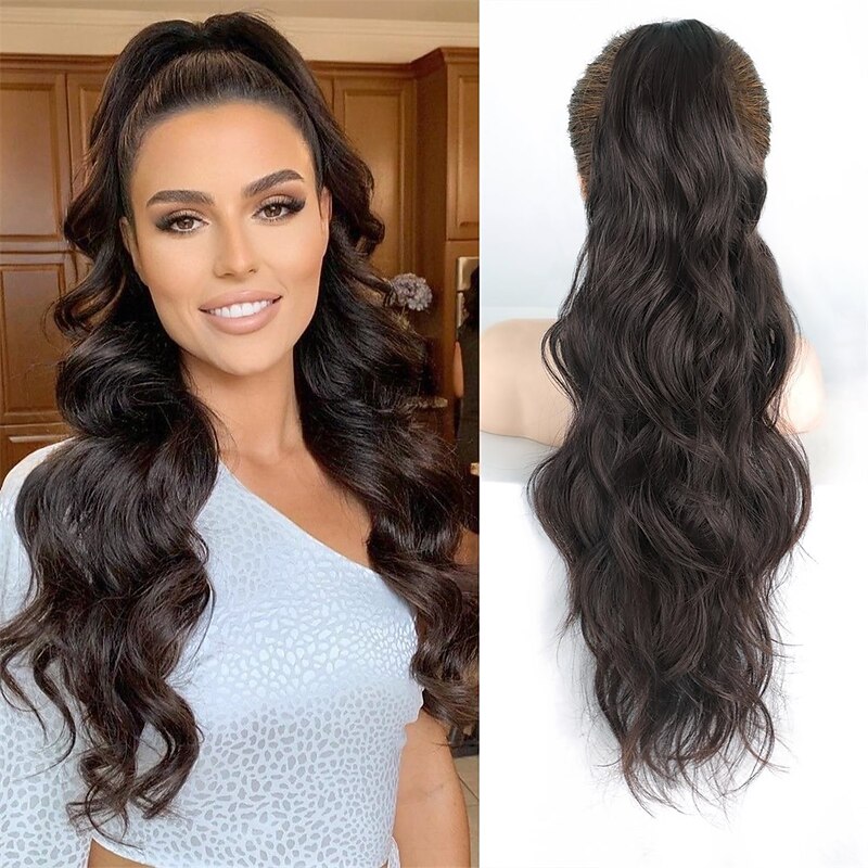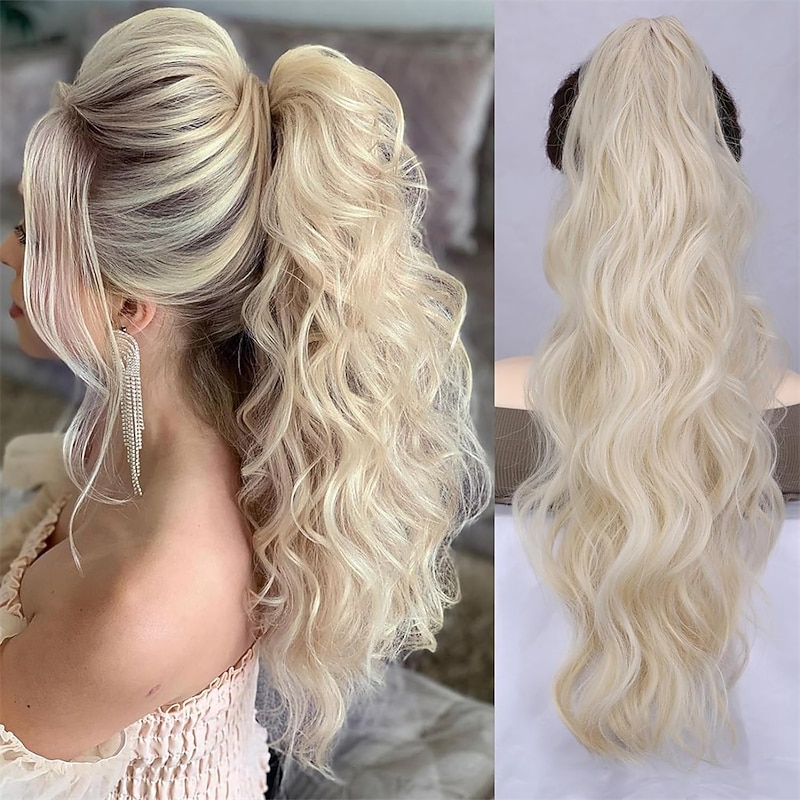 HOT ! Claw Clip in Ponytail Extension 24 Inch Curly Synthetic Wavy Ponytail Extension Fluffy Natural Soft Ponytail for Women Daily Party Use