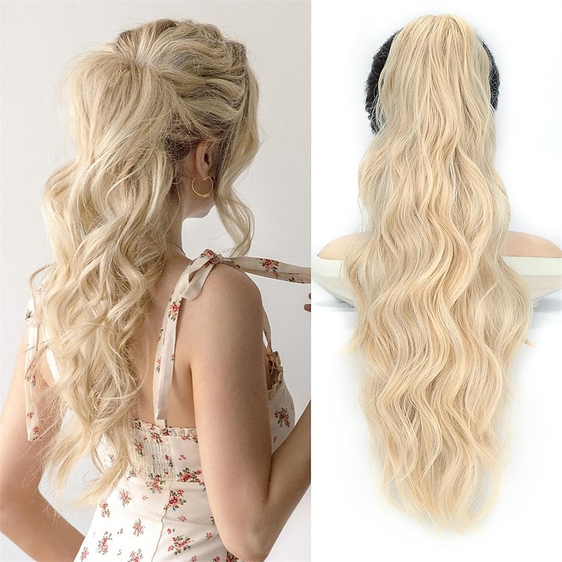 Claw Clip in Ponytail Extension 24 Inch Curly Synthetic Wavy Ponytail Extension Fluffy Natural Soft Ponytail for Women Daily Party Use 22