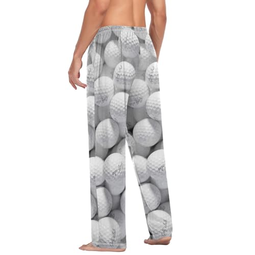 • PRODUCT DESIGN:Our pajama pants for men come with two-side pockets and drawstrings. Pockets are deep and roomy, providing enough space to store your essentials.Our bottom pants use a mature printing process, the white golf balls will not cause fading and peeling problems.Fashion and interesting patterns show your personal style, eye-catching