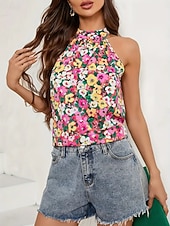 More information about Women's Camisole Tank Top Floral Stylish Casual Sleeveless Halter Neck Regular Tops Daily Print Pink Summer