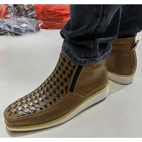 Zenfaze Handcrafted Western Cowboy Boots, Zenfaze Shoes for Men, Square Toe Leather Hand-Wove Work Cowboy Boot with Double Side Zipper 6