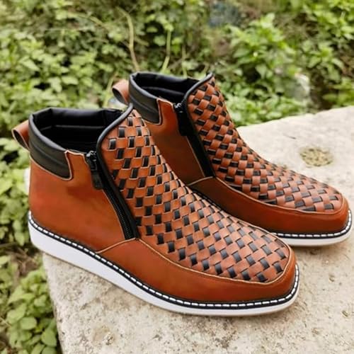 HOT ! Zenfaze Handcrafted Western Cowboy Boots, Zenfaze Shoes for Men, Square Toe Leather Hand-Wove Work Cowboy Boot with Double Side Zipper
