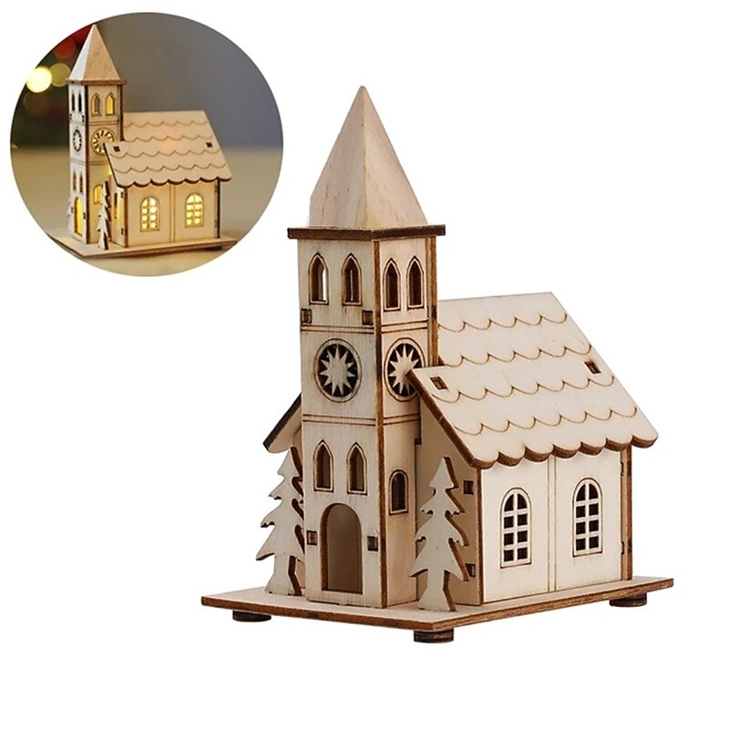 Christmas LED Light Wooden House Luminous Luxury bungalow Christmas Decorations Home Decor Fairy Night Lamp Pendant Kids Gift  1PC 8