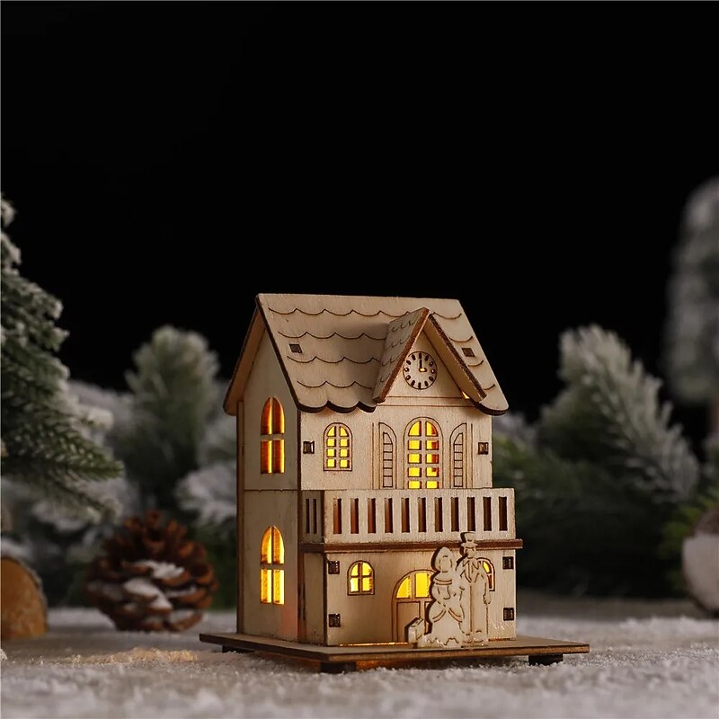 Christmas LED Light Wooden House Luminous Luxury bungalow Christmas Decorations Home Decor Fairy Night Lamp Pendant Kids Gift  1PC 3