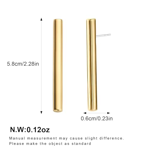 More information about FAMARINE Gold Bar Earrings for Women Minimalist 14K Gold Plated Long Vertical Bars Drop Earring Tube Jewelry